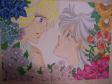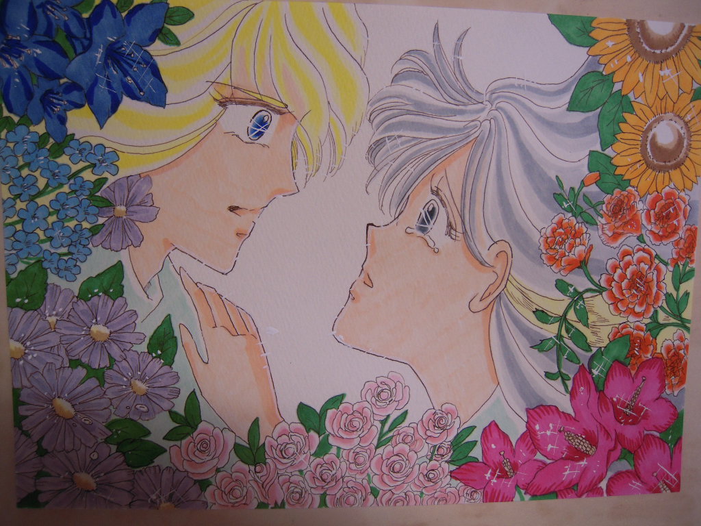 きれいな絵だわぁ。華麗な花で縁取られる二人。すてき!