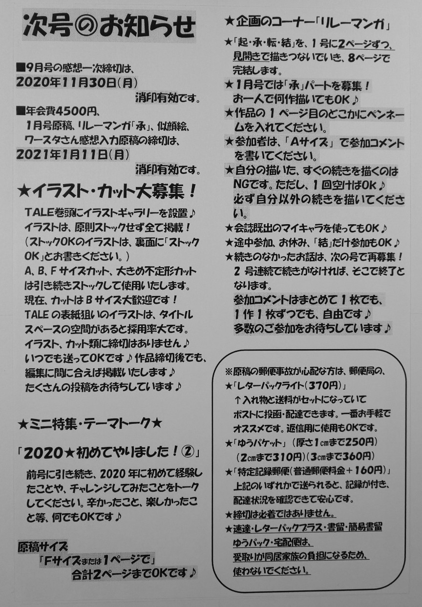 ひとまず次号の締切のお知らせです。