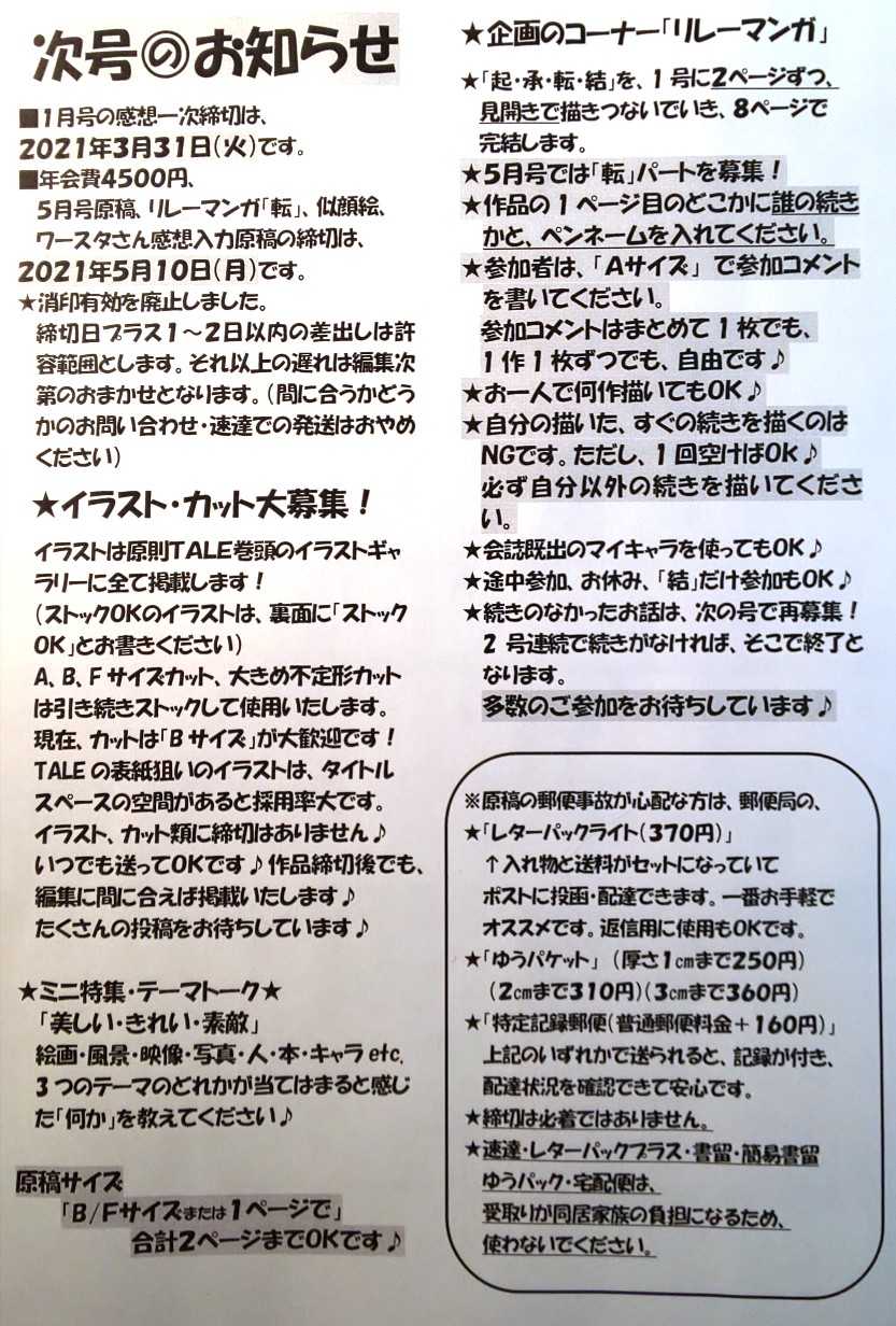 感想、イラストカットは常時募集しています。