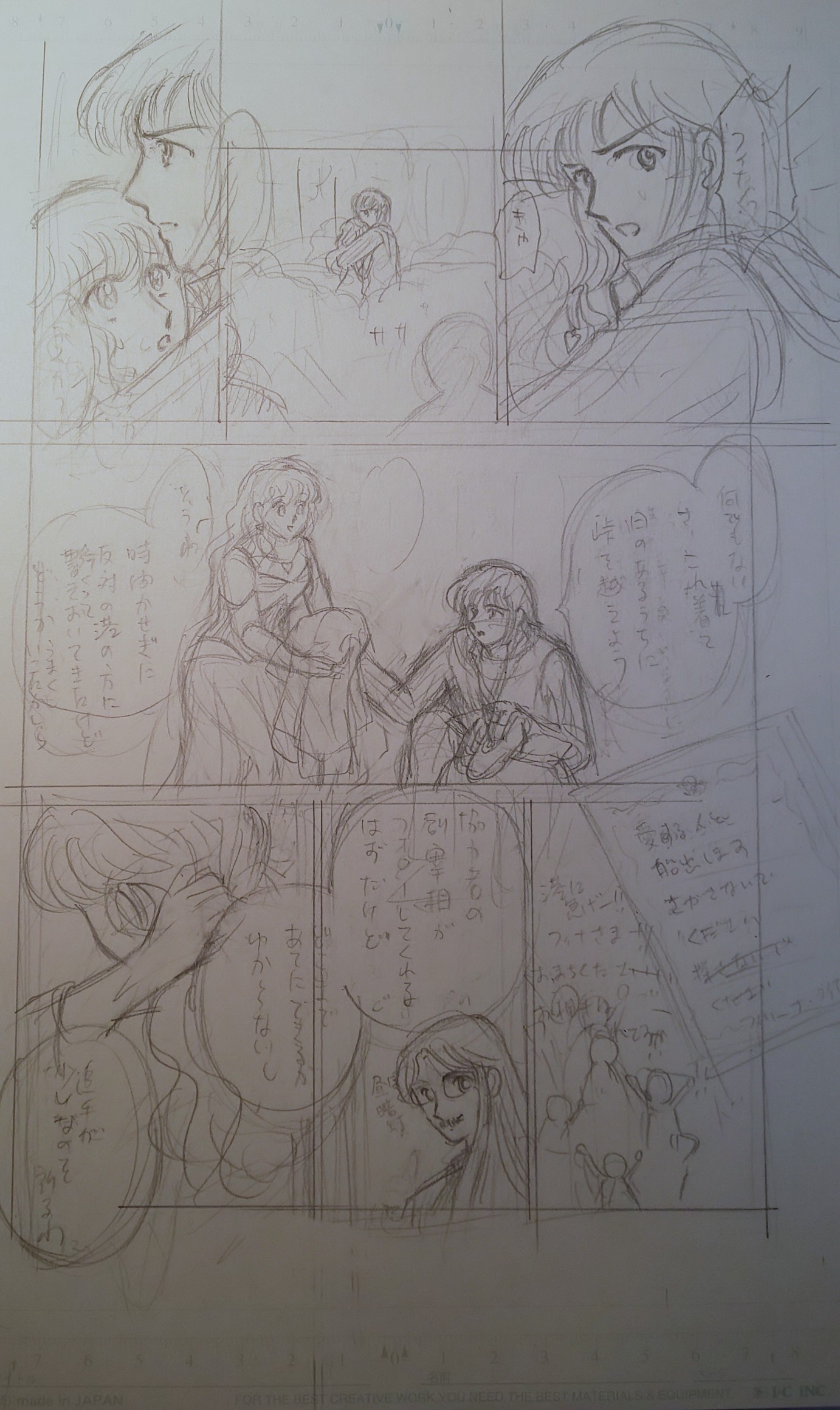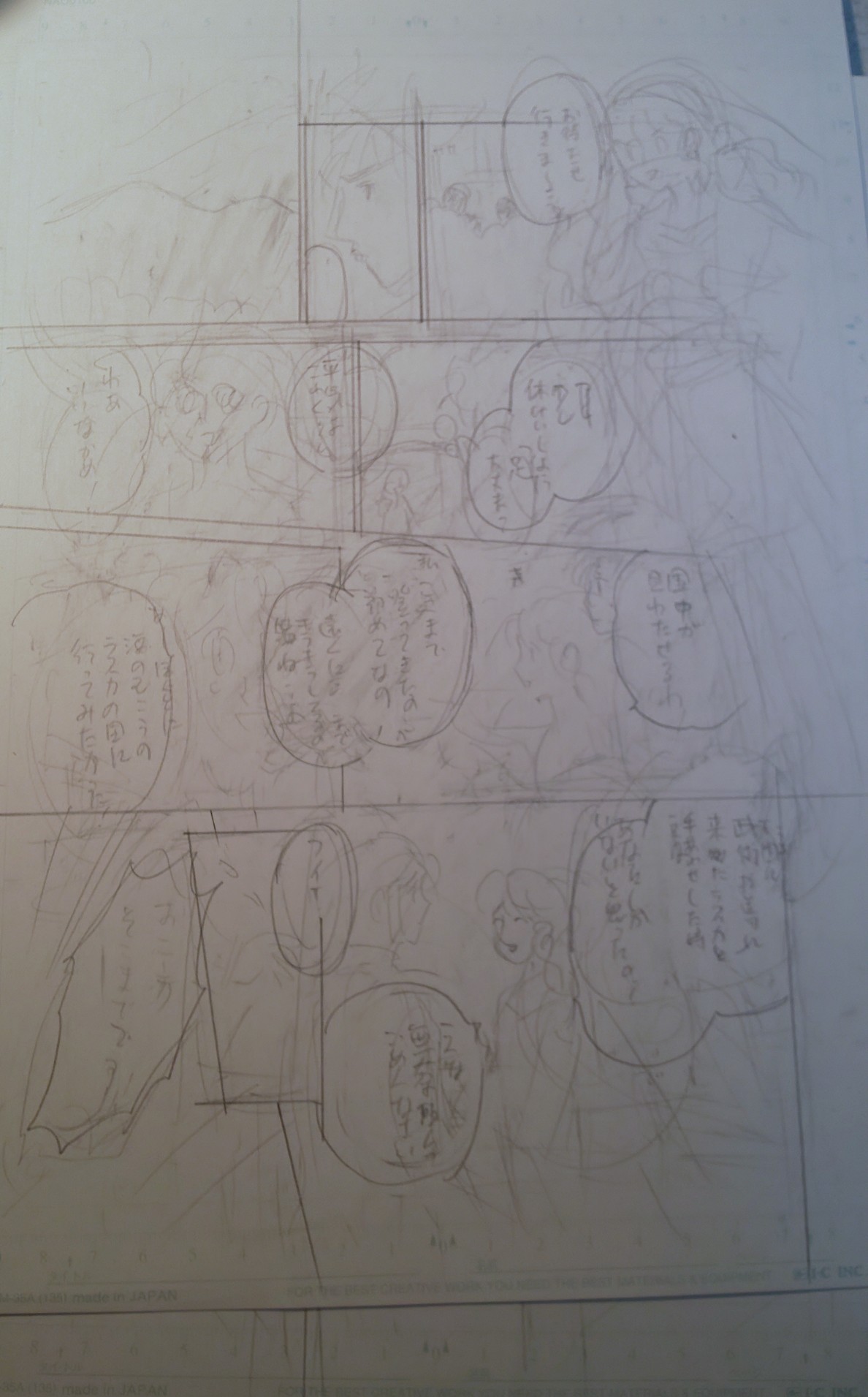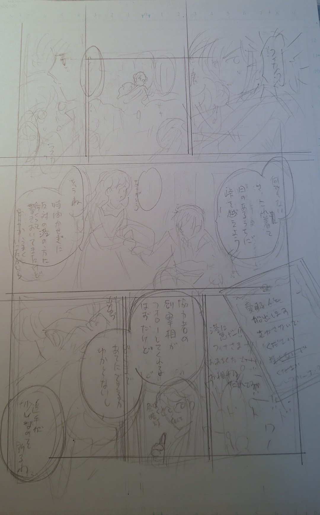 台詞もまだ確定してない段階ですが、とにかく作画優先で、枠線を引く所から手をつけています。