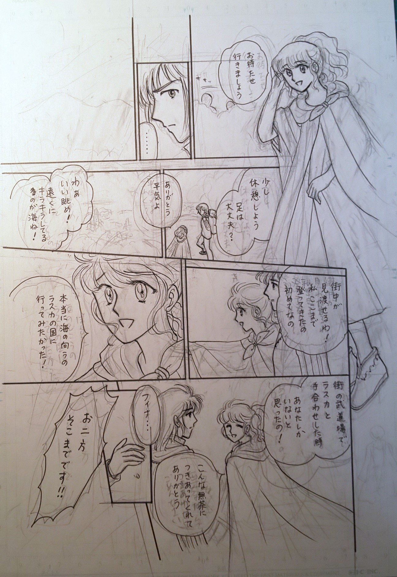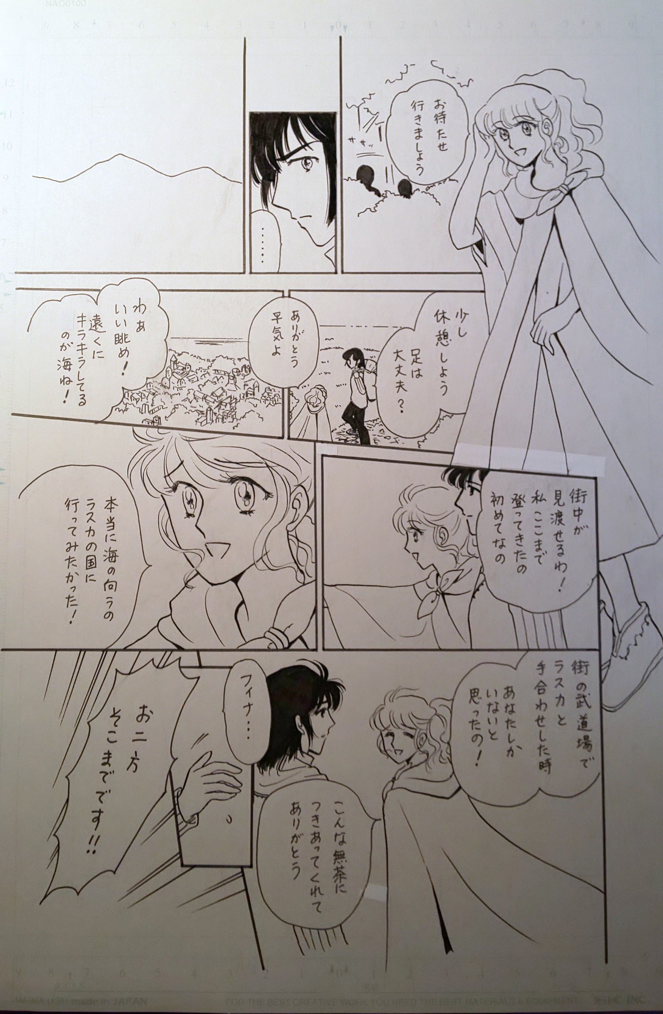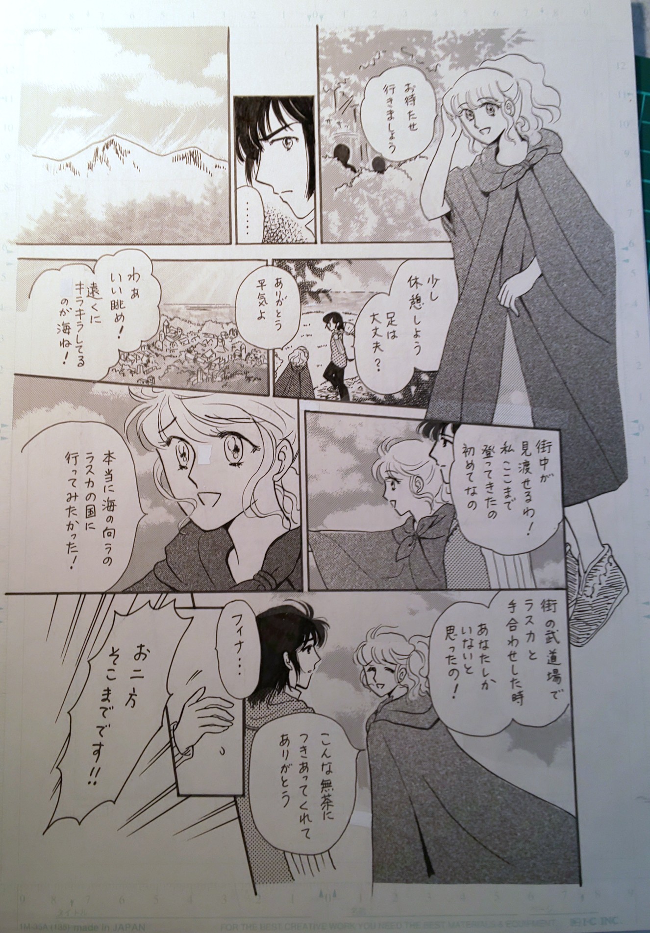 街並みと海のコマは、建物っぽいのをこちゃこちゃ描いた上に陽光のトーンと樹のトーンの重ね貼りと削りで、それっぽくしました。