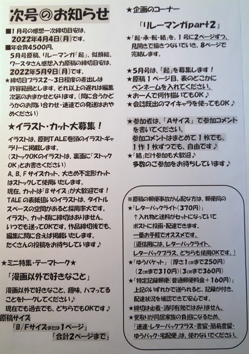A・Bサイズ、1ページサイズのイラスト大募集です!
